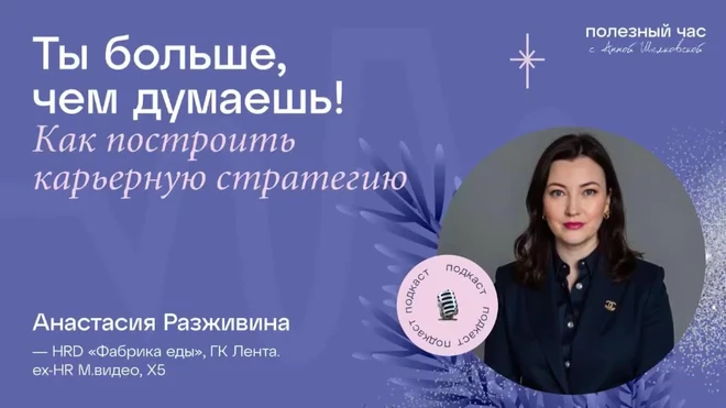 Полезный час 27 подписчиков 52 выпуска Автор подкаста Подписаться У выпуска нет описания.К сожалению, автор подкаста его не заполнил.Автор подкаста Главная Видео Выпуски Последние видеовыпуски 53:55 Когда привычная версия себя больше не работает. Алена Савюк 6 сезон 1 мар. 2026 59:27 Ты больше, чем думаешь! Как построить карьерную стратегию. Анастасия Разживина 6 сезон 10 дек. 2025 Последние выпуски 6 сезон Почему карьерный план не работает и как прожить несколько карьер за одну жизнь. Виктор Савюк Вчера 6 сезон Когда привычная версия себя больше не работает. Алена Савюк 1 мар. 2026 6 сезон Эмоциональный иммунитет. Анна Саркисян 21 февр. 2026 6 сезон Рассказывайте себе вдохновляющие истории. Анна Шелковская 20 февр. 2026 6 сезон Почему смена карьеры почти всегда выглядит не так, как мы ожидали. Дима Елисеев 10 февр. 2026 6 сезон Сам путь - это и есть счастье. О семье, своей жизни и предпринимательстве. Тихонова Елена 23 янв. 2026 6 сезон Как управлять командой в ивент-агентстве, когда важны и люди, и результат. Алиса Гущина 21 дек. 2025 6 сезон Ты больше, чем думаешь! Как построить карьерную стратегию. Анастасия Разживина 10 дек. 2025 6 сезон Креативное лидерство: время перемен. Мария Кузнецова 4 дек. 2025 6 сезон Спецвыпуск: Если вы устали ждать, что кто-то оценит ваши усилия, этот эпизод для вас. Анна Шелковская 30 нояб. 2025 6 сезон Как пересобрать карьеру и сменить жизнь: уйти из офиса и открыть ферму. Наталья Суханова 26 нояб. 2025 5 сезон Как команда может раскрывать свои суперсилы. Мария Буднякова 21 нояб. 2025